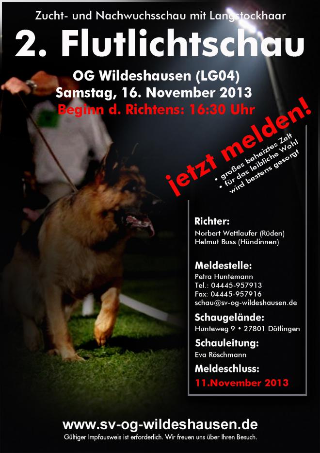 Am 17.11.2912 findet in der OG Wildeshausen die 1. Flutlichtzuchtschau statt.